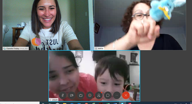 Juan’s sessions transitioned smoothly into telehealth sessions during the COVID-19 statewide social distancing mandates. At each online session his speech-language pathologist, translator, and mom Sara all connected to help Juan reach his outlined goals. Each week, Sara reports new gains that Juan has made in communication.