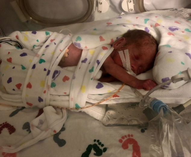 Ashton was born at 24 weeks. He had a breech birth and weighed only 1 pound, 13 ounces. Following his birth, Ashton faced many diagnoses, including a perventricular leukomalicia cyst, an intraventricular hemorrhage, Hydrocephalus, which is the buildup of fluid in the cavities deep within the brain, chronic lung disease, and retinopathy of prematurity, which is an eye disease that can happen in babies who are premature. He’s also at risk for cerebral palsy.